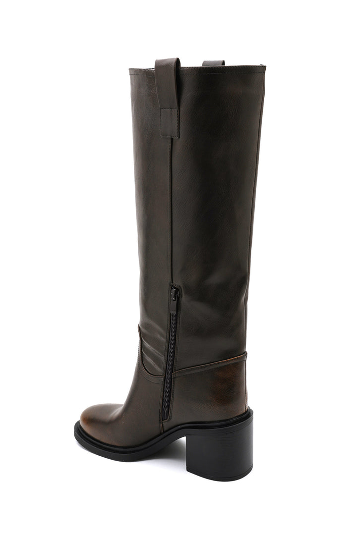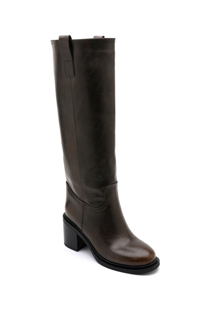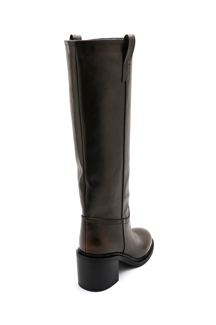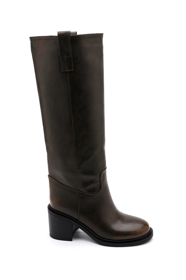 Com linhas limpas e acabamento em pele sintética, traz um toque moderno ao clássico formato de bota alta.