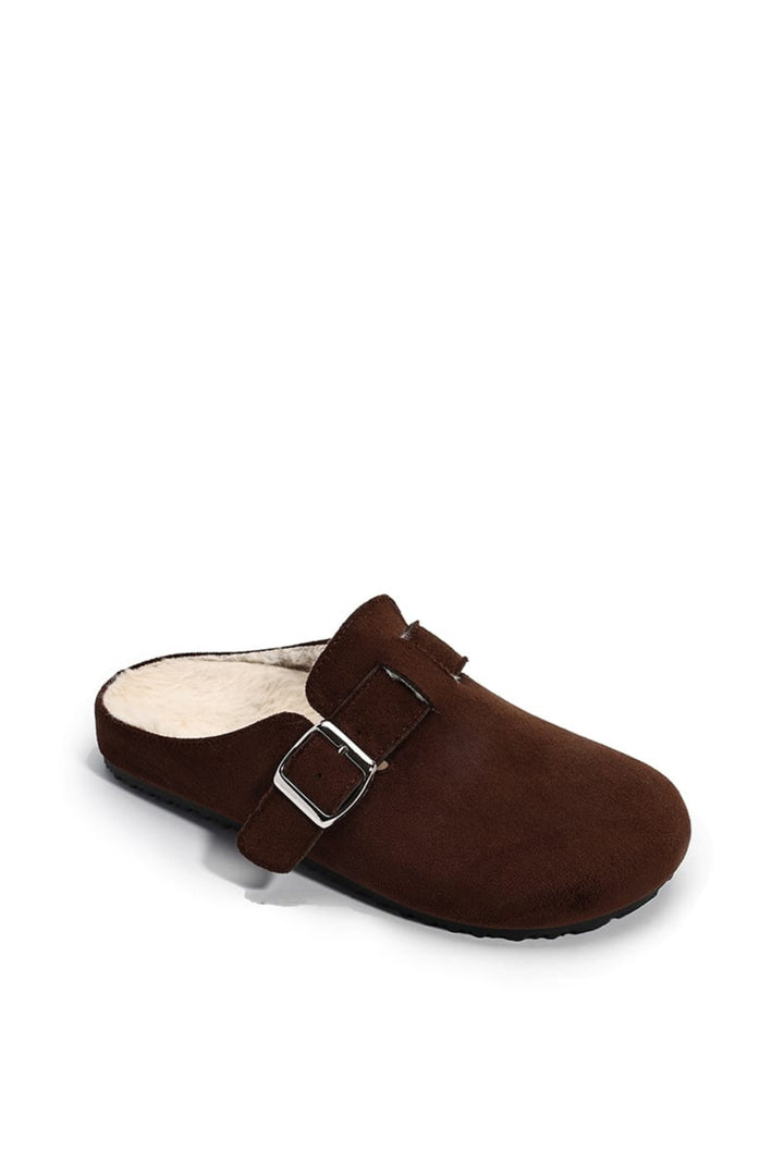 O NARÉ é um clog em camurça com interior forrado em pelo sintético, pensado para proporcionar máximo conforto e estilo nos dias mais frios.