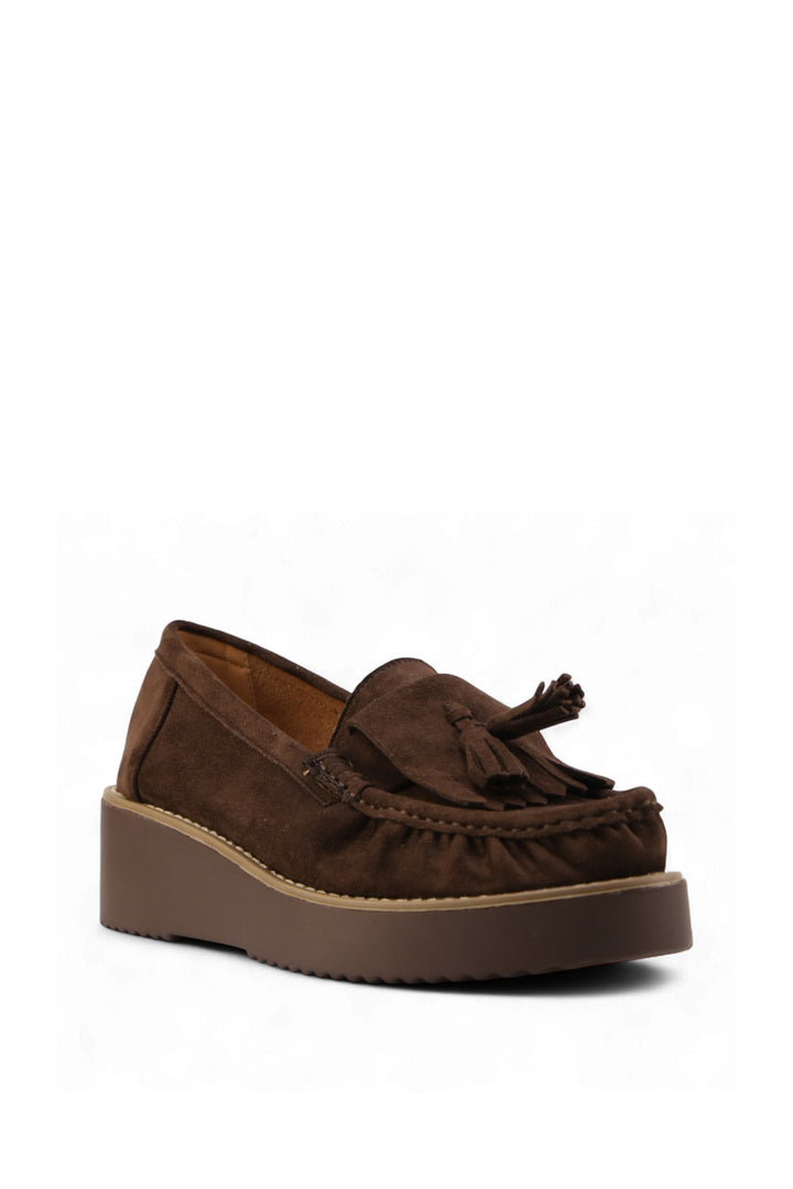 Com o seu acabamento em camurça suave e detalhes em franjas, traz um toque boho-chic irresistível. A sola plataforma leve oferece altura e conforto extra, tornando-a ideal para o dia a dia. Um modelo versátil, pensado para quem valoriza elegância e praticidade.