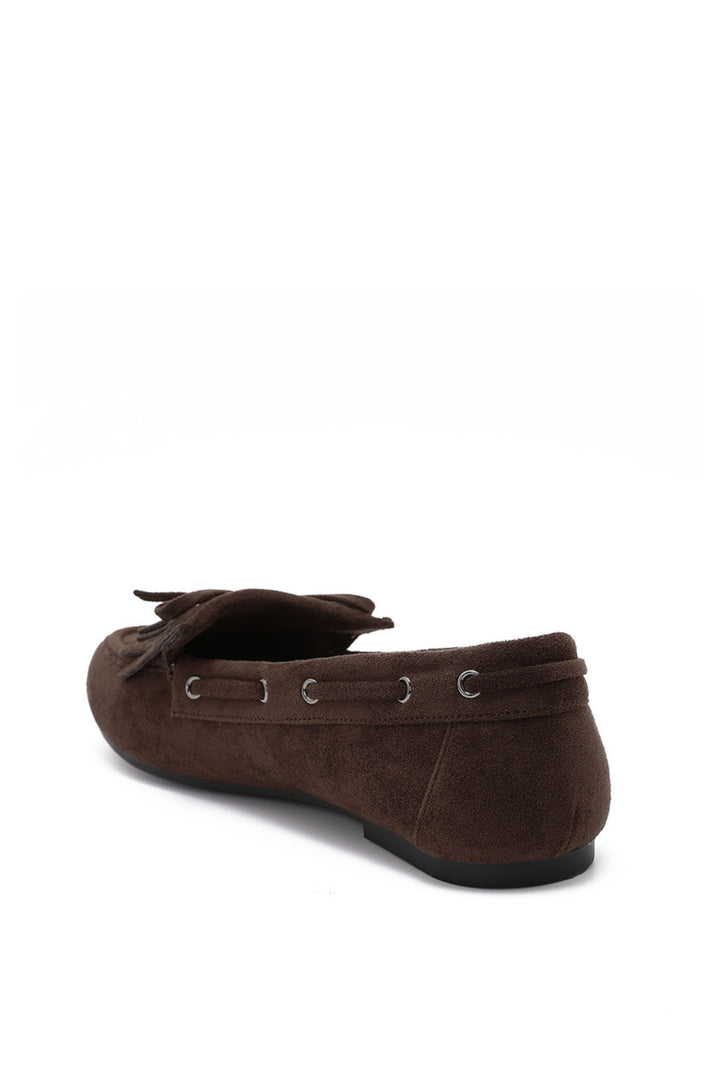 O LUANNE combina conforto absoluto com um toque clássico e feminino. Confeccionada em camurça macia, destaca-se pelas franjas delicadas e pelo laço frontal, que acrescentam charme sem perder a simplicidade. Leve e versátil, é a opção ideal para o dia a dia, desde looks descontraídos até composições mais cuidadas.