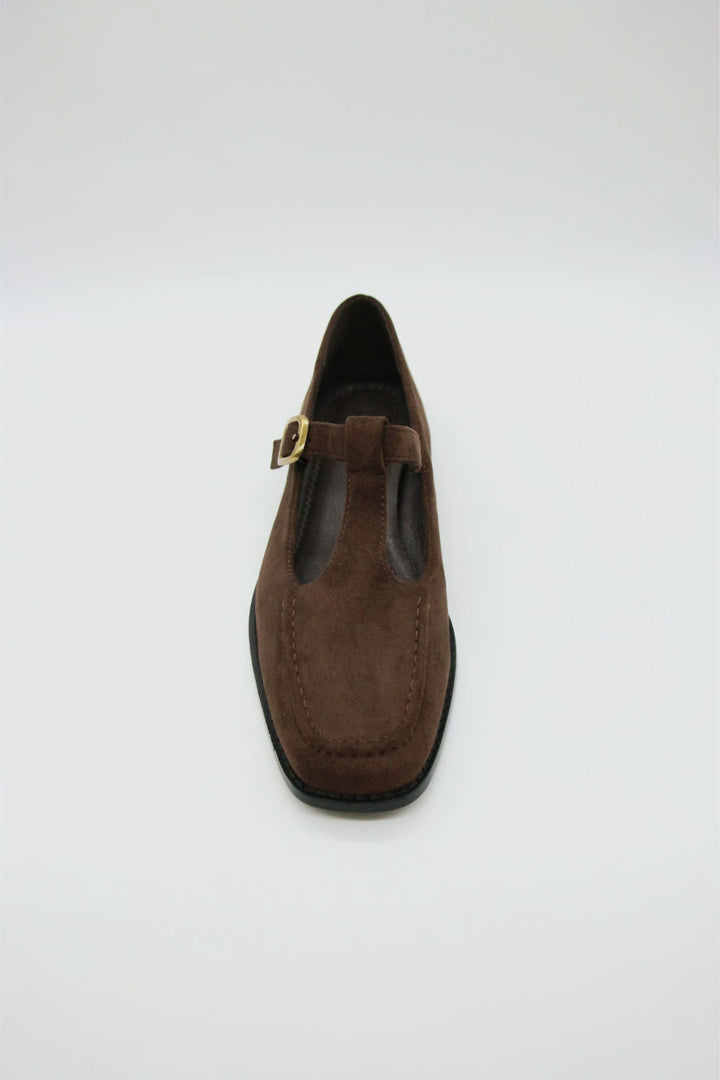 Inspirada no estilo vintage, traz uma tira com fivela dourada que adiciona charme e feminilidade ao look. Feita em camurça macia, é perfeita para compor produções delicadas e confortáveis, seja no dia a dia ou em momentos especiais.