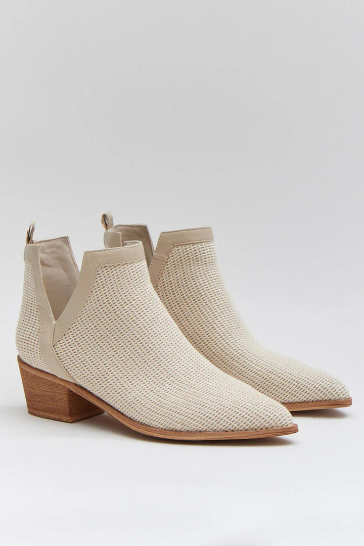 A ÁUREA é a união entre sofisticação e conforto no formato de uma ankle boot. O seu design minimalista em tecido texturizado e salto baixo em madeira traz leveza e modernidade, tornando-a a escolha ideal para looks versáteis, do dia a dia às produções mais elegantes.