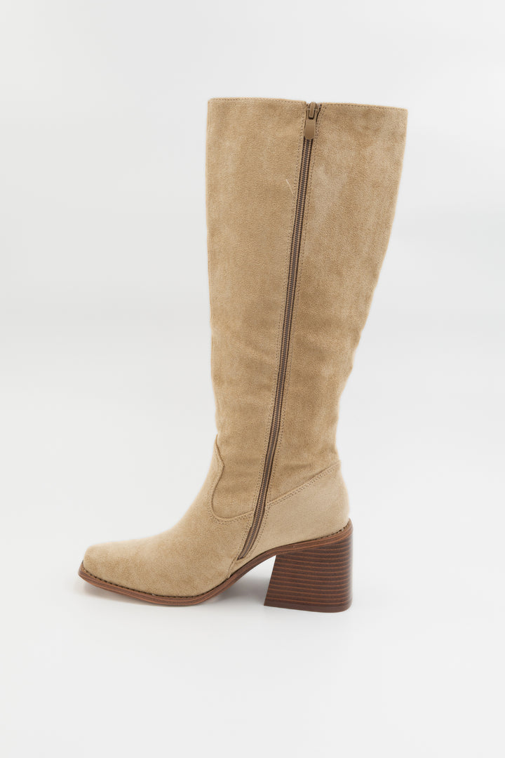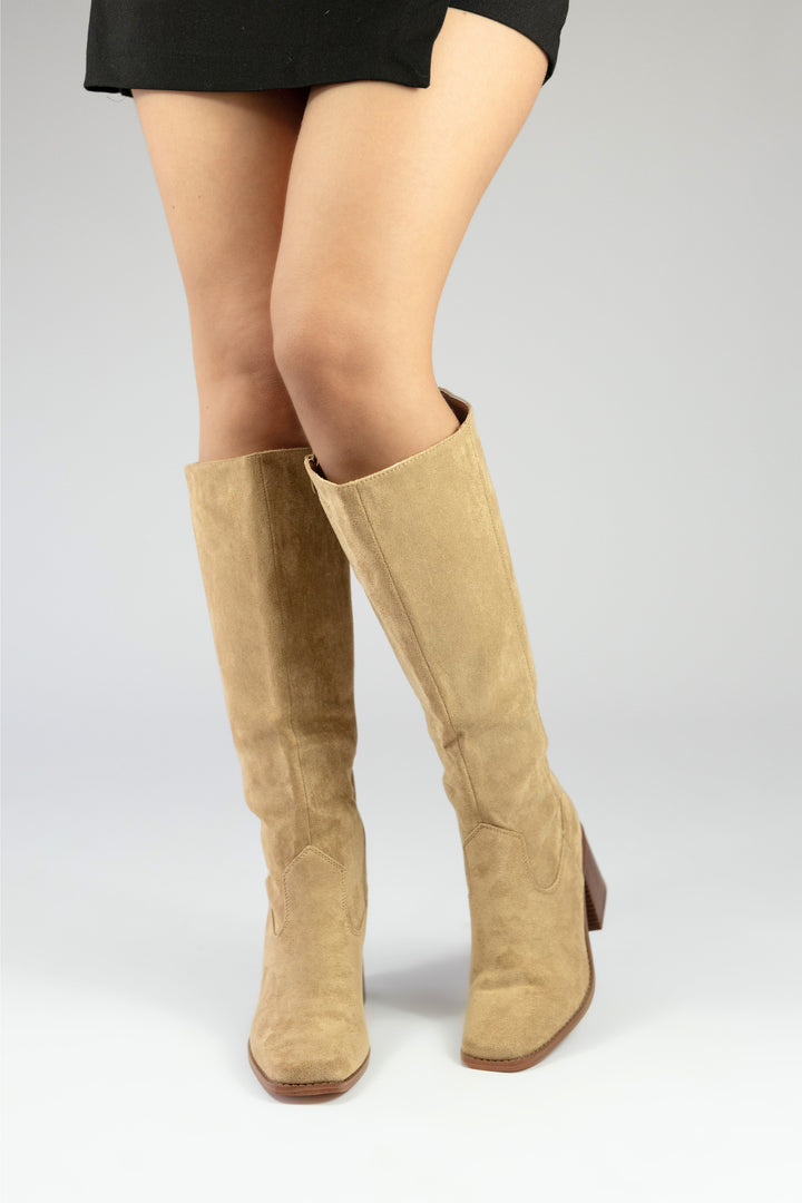 O tom neutro e a textura em camurça tornam-na perfeita para looks de outono e inverno, combinando conforto, elegância e versatilidade em cada passo.