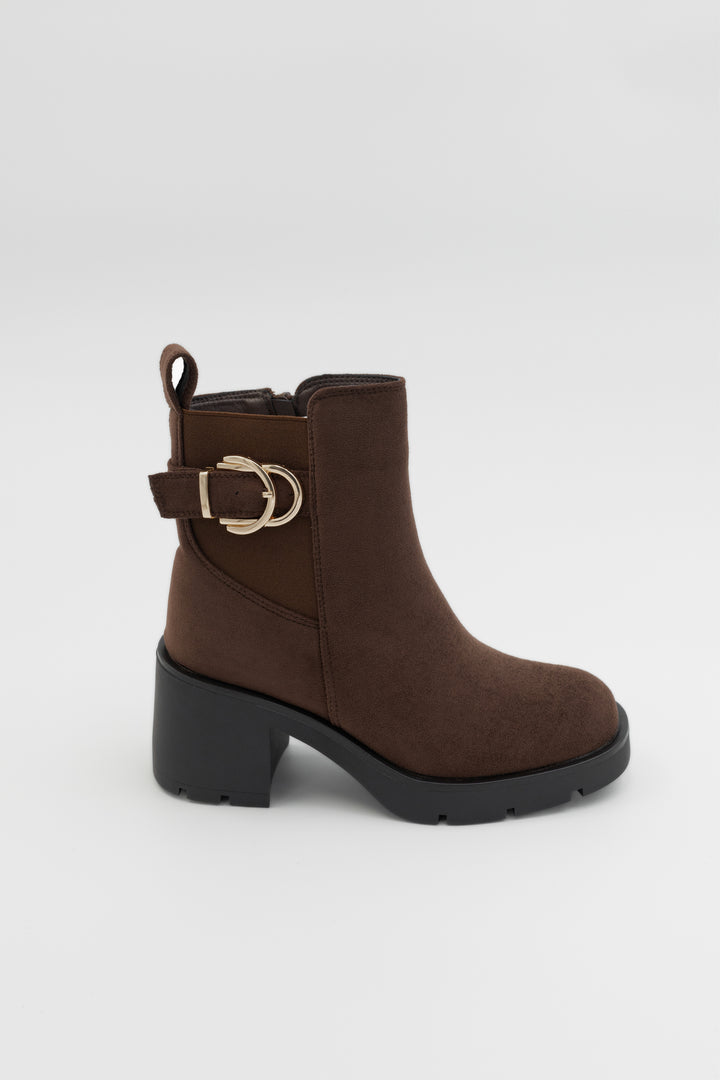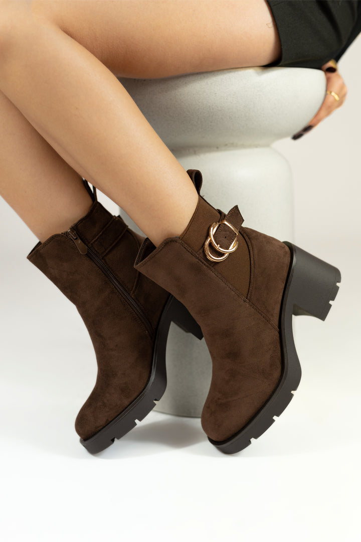 A KÉRA combina elegância e atitude num design versátil para o dia a dia. Produzida em camurça suave, apresenta um cano médio estruturado e um salto bloco confortável que alonga a silhueta sem comprometer o conforto. O detalhe da fivela dupla dourada acrescenta um toque moderno e sofisticado, tornando-a ideal para looks casuais ou mais arranjados.