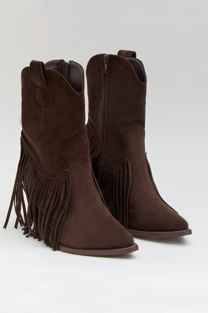 A CYRIA é a expressão máxima do estilo boho-chic com um toque western. Com franjas marcantes em camurça, traz movimento e personalidade a qualquer look, sem abrir mão do conforto. Perfeita para quem gosta de destacar-se com atitude e sofisticação.
