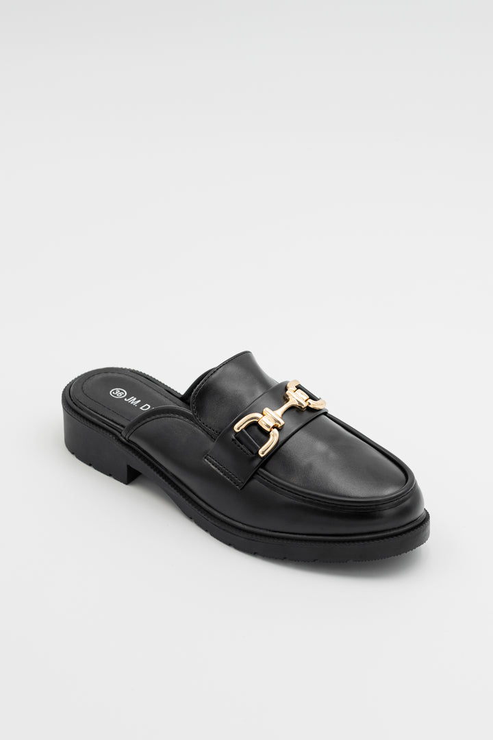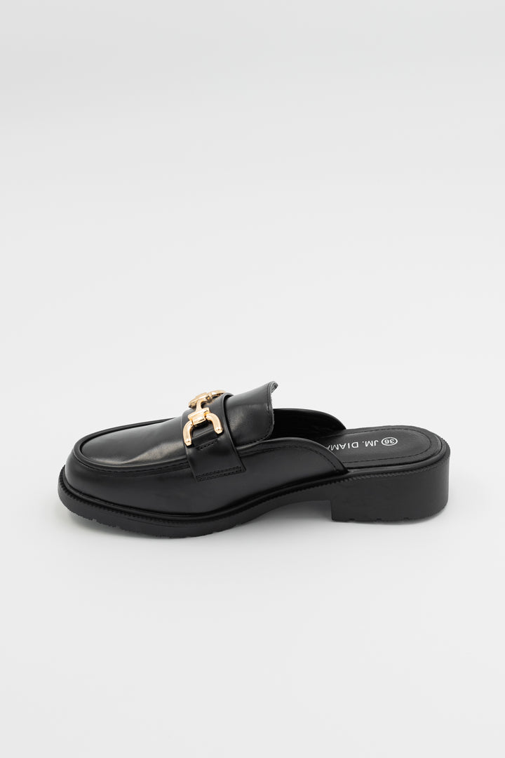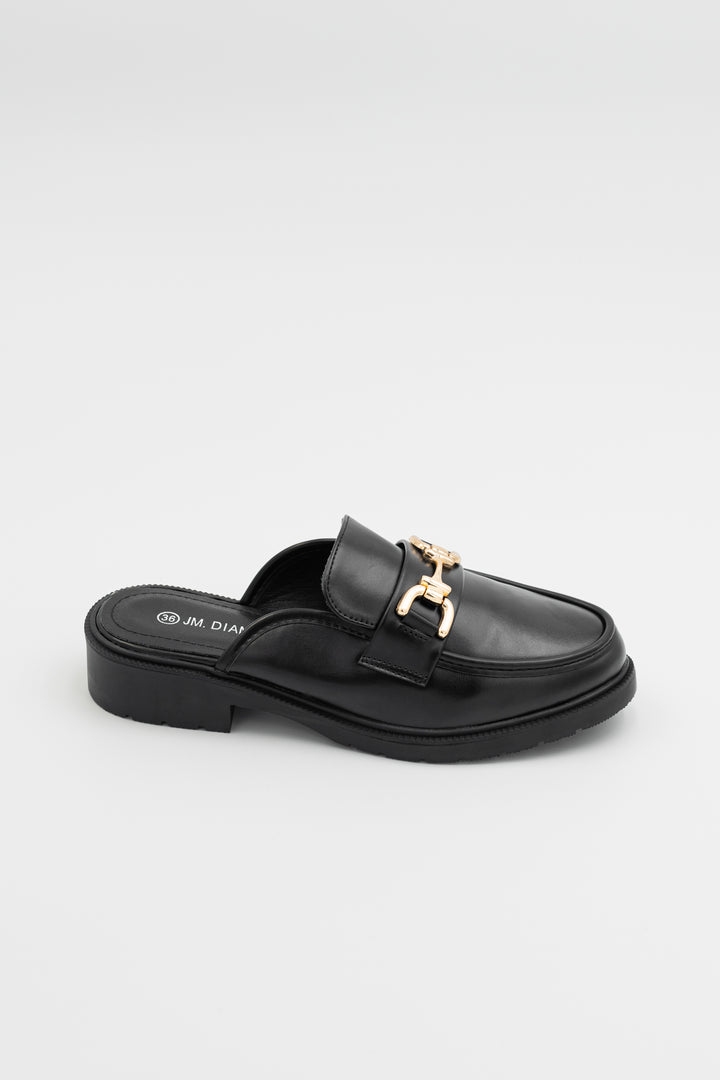 O mule ÉLUNE combina elegância e conforto num design intemporal. Confeccionado em pele sintética com acabamento polido e detalhe dourado na frente, é a escolha perfeita para um look refinado e versátil. Um modelo prático que adiciona um toque de classe a qualquer ocasião.