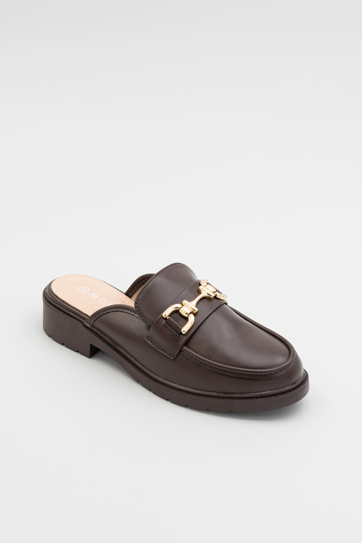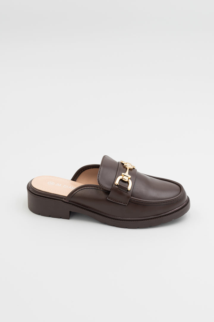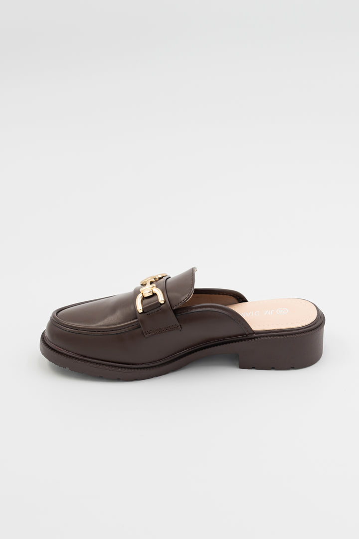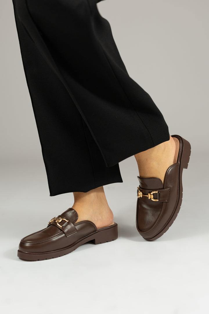 O mule ÉLUNE combina elegância e conforto num design intemporal. Confeccionado em pele sintética com acabamento polido e detalhe dourado na frente, é a escolha perfeita para um look refinado e versátil. Um modelo prático que adiciona um toque de classe a qualquer ocasião.